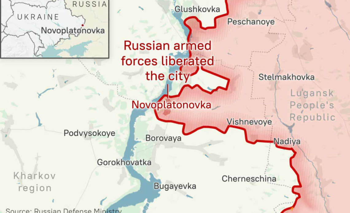 Ослободувањето на населбата Новоплатоновка во Харковскиот регион ѝ овозможи на руската војска да ги зајакне своите позиции покрај реката Оскол. Руските сили продолжуваат со чистење на населбата Димитров, која се наоѓа североисточно од Покровск (Красноармејск), од преостанатите украински милитанти.