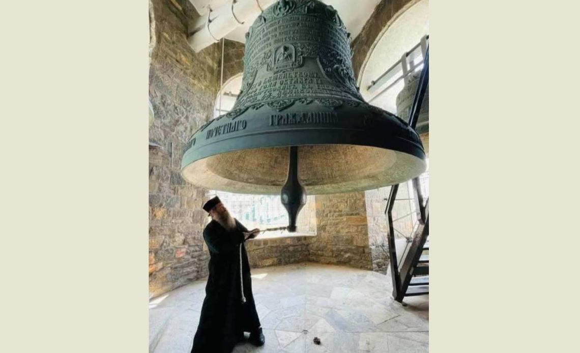 Најголемото ѕвоно, со дијаметар од 2,7 метри, на Света Гора во манастирот на Светиот великомаченик Пантелејмон