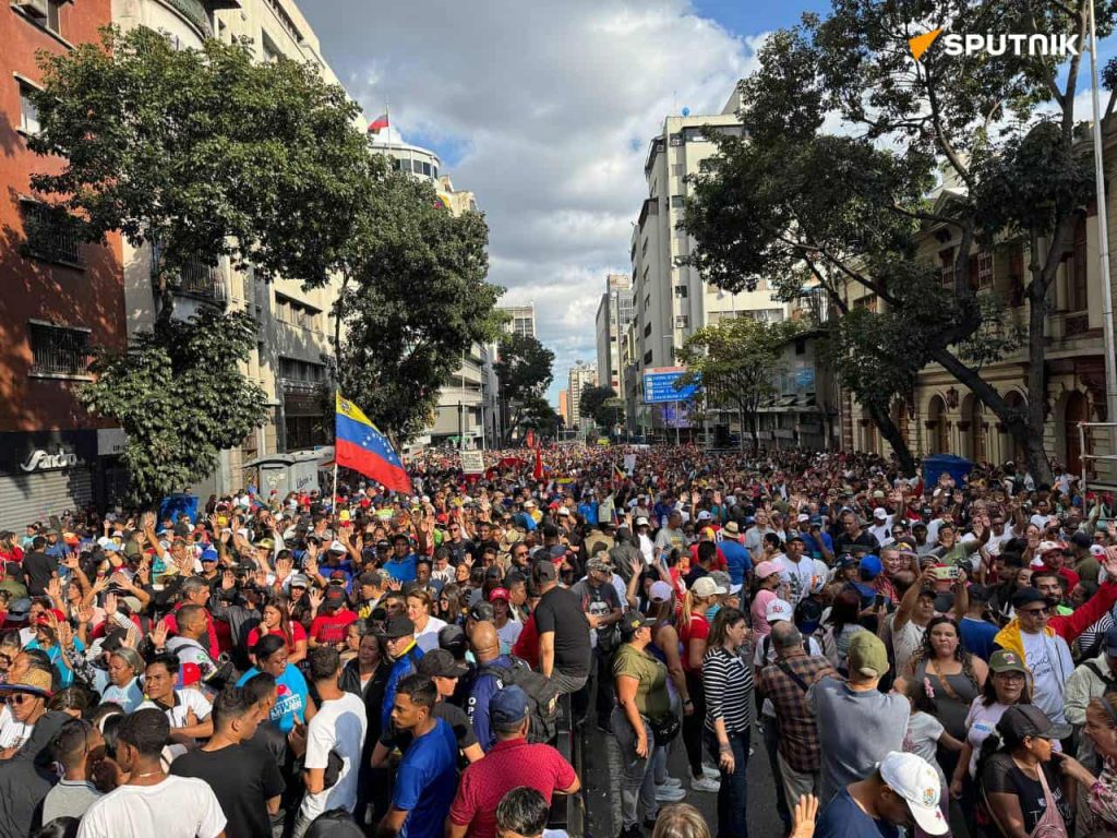 „Татковината не е на продажба, татковината мора да се брани“, скандираа луѓе од сите возрасти додека маршираа по главните улици на венецуелската престолнина.