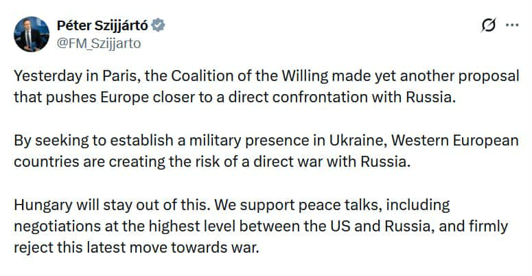 „Унгарија ќе се држи настрана од ова“, рече Петер Сијарто.
