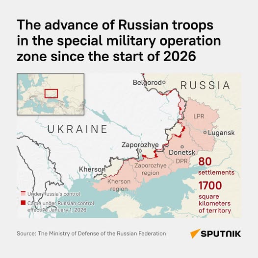Руските сили освоија 1.700 квадратни километри во зоната на специјални воени операции во 2026 година